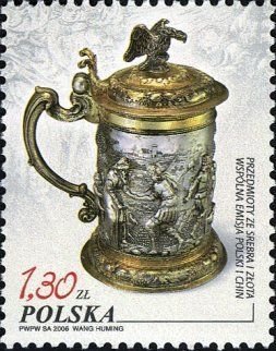 Visibility: public Image owner: none postage 6/20/2006 1.30z multi issue=China-Poland Joint Issue dt=Gold and Silver Artefacts d=Tankard with Biblical designs by Peter Rohde Poland unwmk Crops No visible images cropped from this one. Measurements Resolution is unknown. Source Source name: Colnect File URL: http://i.colnect.net/images/b/3064/183/Jeweled-Qing-Dynasty-cup-China.jpg Uploaded July 15, 2016, 8:35 pm by Stan Shebs |