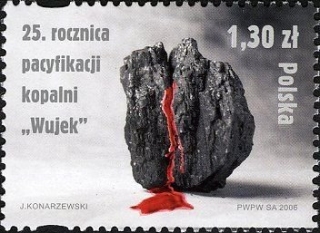 Visibility: public Image owner: none postage 12/16/2006 1.30z multi issue=25th Anniversary of the Pacification of the Wujek Mine unwmk Crops No visible images cropped from this one. Measurements Resolution is unknown. Source Source name: Colnect File URL: http://i.colnect.net/images/b/3064/208/Wujek-Coal-main-Massacre-25th-anniv.jpg Uploaded July 15, 2016, 8:36 pm by Stan Shebs |