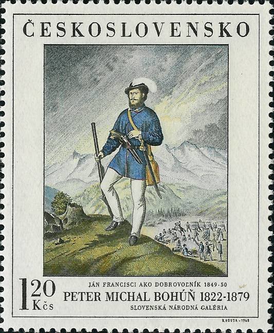 Visibility: public Image owner: none postage 11/29/1968 1.20k multi dt=paintings (1968 Czechoslovakia) d=PMBohúň Ján Francisci jako dobrovolník 1849-1850 unwmk perf=11.75 Crops No visible images cropped from this one. Measurements Resolution is unknown. Source Source name: Colnect File URL: http://i.colnect.net/b/438/460/Giovanni-Francisci-as-a-Volunteer-by-Peter-Michal-Bohun.jpg Uploaded August 24, 2014, 8:58 pm by Stan Shebs |