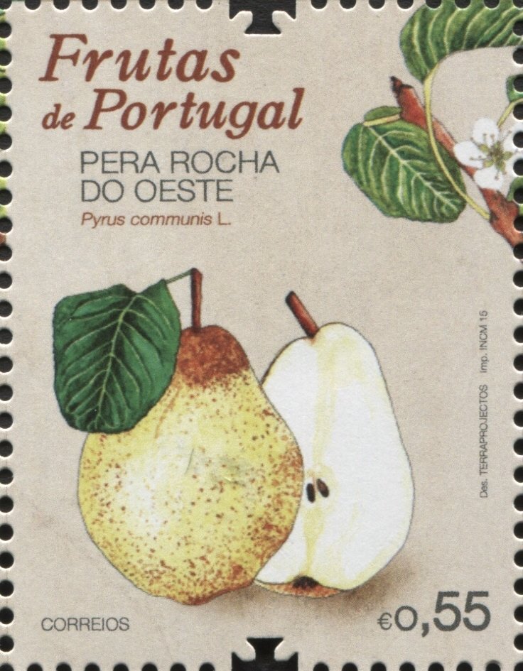 Visibility: public Image owner: none postage 9/1/2015 0.55€ multi issue=Fruits of Portugal d=pear (2015) unwmk Crops No visible images cropped from this one. Measurements Resolution is unknown. Source Source name: Colnect File URL: http://i.colnect.net/b/2897/210/Pyrus-communis.jpg Uploaded July 16, 2016, 2:30 pm by Stan Shebs |