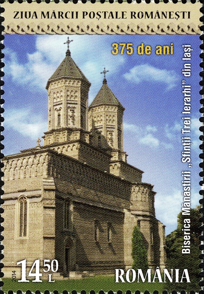 Visibility: public Image owner: none postage 7/15/2014 14.50l multi issue=Stamp Day 2014 d=Church of the Three Holy Hierarchs Monastery in Iasi unwmk Crops No visible images cropped from this one. Measurements Resolution is unknown. Source Source name: Colnect File URL: http://i.colnect.net/b/2759/861/Romanian-Postage-Stamp-Day.jpg Uploaded July 18, 2016, 8:59 pm by Stan Shebs |