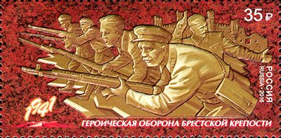 Visibility: public Image owner: none postage 6/22/2016 35r multi issue=Joint Issue of the Russian Federation and the Republic of Belarus - Heroic Defence of the Brest Fort unwmk Crops No visible images cropped from this one. Measurements Resolution is unknown. Source Source name: Colnect File URL: http://i.colnect.net/b/3382/202/The-heroic-defense-of-the-Brest-Fortress.jpg Uploaded July 20, 2016, 2:22 pm by Stan Shebs |