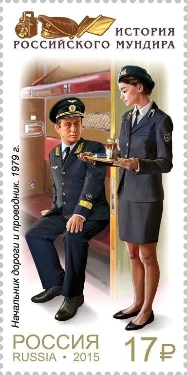 Visibility: public Image owner: none postage 8/11/2015 17.00r multi issue=History of the Russian Uniform - Uniform Jackets of Railway Transport unwmk Crops No visible images cropped from this one. Measurements Resolution is unknown. Source Source name: Colnect File URL: http://i.colnect.net/b/2913/059/Head-of-Railways-and-the-Conductor-1979.jpg Uploaded July 20, 2016, 4:12 pm by Stan Shebs |