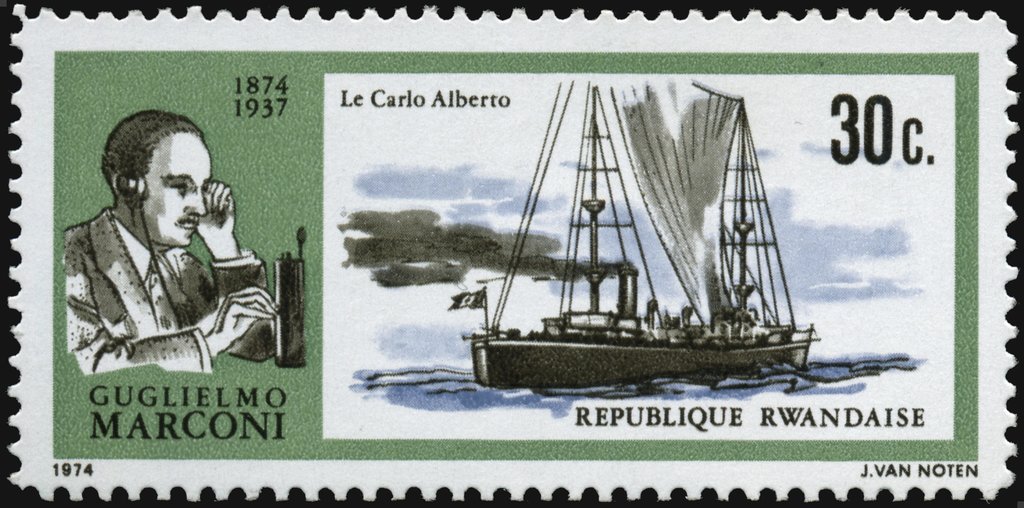 Visibility: public Image owner: none postage 8/19/1974 30c multi issue=100th Anniversary of the Birth of Guglielmo Marconi d=The Electra unwmk Crops No visible images cropped from this one. Measurements Resolution is unknown. Source Source name: Colnect File URL: http://i.colnect.net/b/3167/037/Marconi-and-steamer-“Carlo-Alberto-.jpg Uploaded July 20, 2016, 6:23 pm by Stan Shebs |