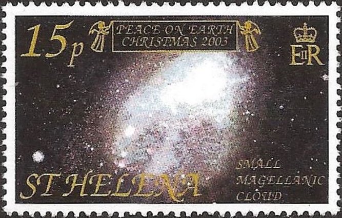 Visibility: public Image owner: none postage 10/6/2003 15p multi issue=Christmas 2003 dt=southern sky d=Small Magellanic Cloud wmk=mult crown & script CA Crops No visible images cropped from this one. Measurements Resolution is unknown. Source Source name: Colnect File URL: http://i.colnect.net/b/3412/136/Small-Magellanic-Cloud.jpg Uploaded July 21, 2016, 3:16 pm by Stan Shebs |