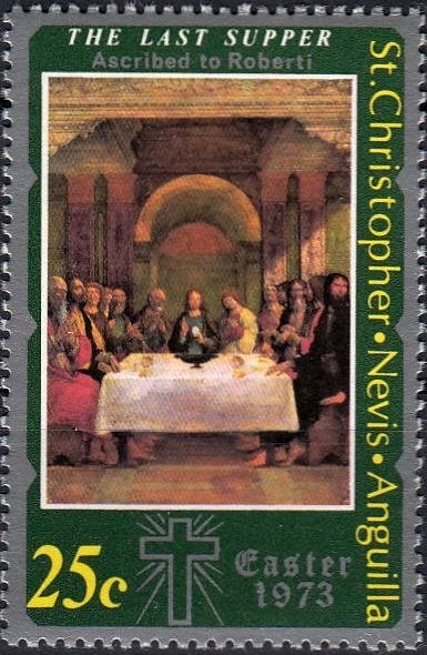 Visibility: public Image owner: none postage 4/16/1973 25c multi issue=Easter 1973 d=The Last Supper Ascribed to Roberti wmk=mult crown & script CA Crops No visible images cropped from this one. Measurements Resolution is unknown. Source Source name: Colnect File URL: http://i.colnect.net/b/2969/294/The-Last-Supper-Ascribed-to-Roberti.jpg Uploaded July 21, 2016, 4:21 pm by Stan Shebs |
