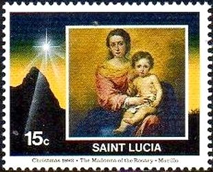 Visibility: public Image owner: none postage 12/6/1993 15c multi issue=Christmas 1993 d="The Madonna of the Rosary" - Murillo wmk=crown & CA spiral perf=13.75 Crops No visible images cropped from this one. Measurements Resolution is unknown. Source Source name: Colnect File URL: http://i.colnect.net/b/2906/199/The-Madonna-of-the-Rosary-by-Murillo.jpg Uploaded July 21, 2016, 4:47 pm by Stan Shebs |