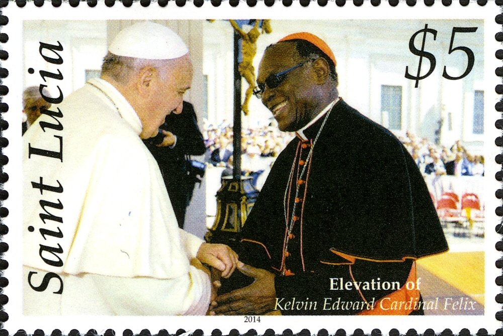 Visibility: public Image owner: none postage 12/12/2014 $5 multi issue=Elevation of His Eminence Kelvin Edward Cardinal Felix unwmk perf=13.25x13.5 Crops No visible images cropped from this one. Measurements Resolution is unknown. Source Source name: Colnect File URL: http://i.colnect.net/b/3058/982/Elevation-of-His-Eminence-Kelvin-Edward-Cardinal-Felix.jpg Uploaded July 21, 2016, 4:49 pm by Stan Shebs |