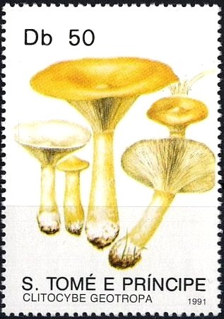 Visibility: public Image owner: none postage 8/30/1991 50db multi issue=Fungi 1991 dt=Fungi (1991 St. Thomas & Prince Islands) d=Clitocybe geotropa unwmk Crops No visible images cropped from this one. Measurements Resolution is unknown. Source Source name: Colnect File URL: http://i.colnect.net/b/2954/803/Clitocybe-geotropa.jpg Uploaded July 28, 2016, 5:37 pm by Stan Shebs |