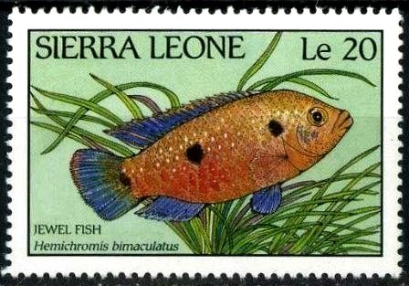 Visibility: public Image owner: none postage 4/13/1988 20le multi dt=fishes of Sierra Leone d=Hemichromis bimaculatus (1988) unwmk perf=15 Crops No visible images cropped from this one. Measurements Resolution is unknown. Source Source name: Colnect File URL: http://i.colnect.net/images/b/2922/517/Jewel-Cichlid-Hemichromis-bimaculatus-.jpg Uploaded July 29, 2016, 1:02 am by Stan Shebs |