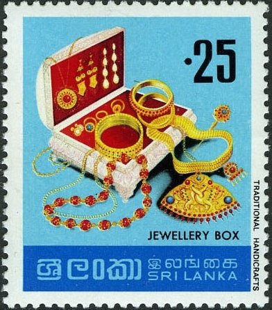 Visibility: public Image owner: none postage 4/7/1977 25c multi issue=Handicrafts of Sri Lanka dt=Handicrafts (1977 Sri Lanka) d=Jewellery box unwmk perf=13 Crops No visible images cropped from this one. Measurements Resolution is unknown. Source Source name: Colnect File URL: http://i.colnect.net/b/2154/396/Jewellery-box.jpg Uploaded August 9, 2016, 12:38 am by Stan Shebs |