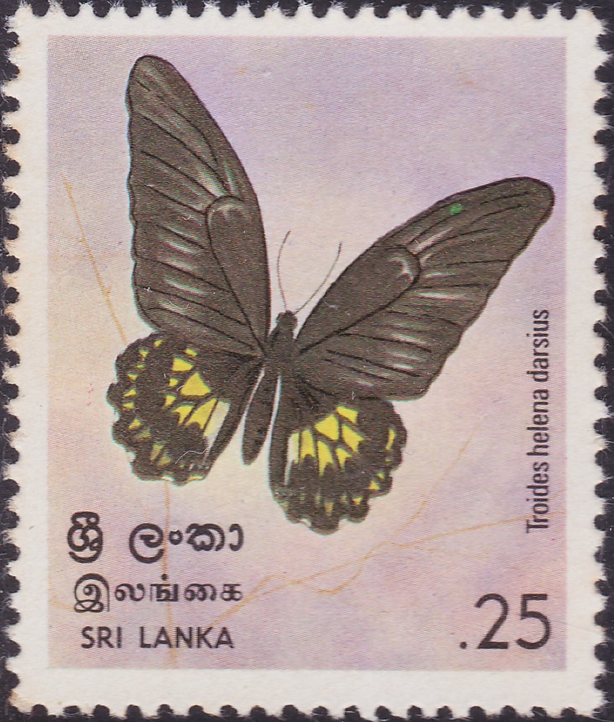 Visibility: public Image owner: none postage 11/28/1978 25c multi dt=butterflies (1978 Sri Lanka) d=Troides helena darsius unwmk Crops No visible images cropped from this one. Measurements Resolution is unknown. Source Source name: Colnect File URL: http://i.colnect.net/b/2394/260/Sri-Lankan-Birdwing-Troides-helena-darsius.jpg Uploaded August 9, 2016, 12:38 am by Stan Shebs |
