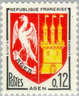 Visibility: public Image owner: none postage 6/1964 0,12(fr) multi issue=arms 1964 dt=arms (1964 France) d=arms of Agen unwmk perf=14x13.5 Crops No visible images cropped from this one. Measurements Resolution is unknown. Source Source name: Colnect File URL: http://i.colnect.net/b/144/437/Agen.jpg Uploaded August 24, 2014, 9:43 pm by Stan Shebs |