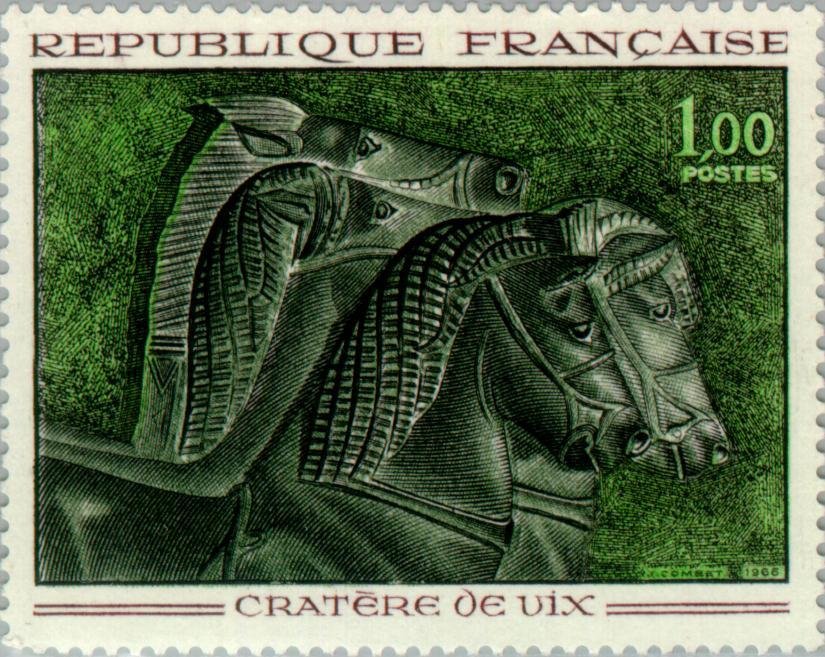Visibility: public Image owner: none postage 3/26/1966 1fr multi issue=art 1966 d=bronze vessel unwmk perf=13x12.5 Crops No visible images cropped from this one. Measurements Resolution is unknown. Source Source name: Colnect File URL: http://i.colnect.net/b/144/517/Cratère-de-Vix-Bronze-Vase-detail.jpg Uploaded August 24, 2014, 9:45 pm by Stan Shebs |