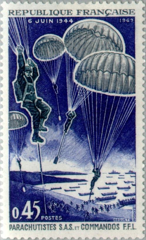 Visibility: public Image owner: none postage 5/31/1969 45c dkbl&viobl issue=French commandos in Normandy 25th d=parachutists over Normandy beaches unwmk perf=13 Crops No visible images cropped from this one. Measurements Resolution is unknown. Source Source name: Colnect File URL: http://i.colnect.net/images/b/144/668/Landing-SAS-commandos-and-paratroopers-FFL---June-6-1944.jpg Uploaded August 24, 2014, 9:55 pm by Stan Shebs |