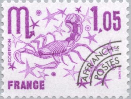 Visibility: public Image owner: none postage 4/1/1977 1.05fr vio issue=zodiac unwmk perf=13 Crops No visible images cropped from this one. Measurements Resolution is unknown. Source Source name: Colnect File URL: http://i.colnect.net/b/145/072/The-Signs-of-the-Zodiac-Scorpio.jpg Uploaded August 24, 2014, 9:55 pm by Stan Shebs |
