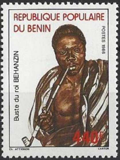 Visibility: public Image owner: none postage 10/30/1986 440f multi issue=King Behanzin unwmk Crops No visible images cropped from this one. Measurements Resolution is unknown. Source Source name: Colnect File URL: http://i.colnect.net/b/3789/763/King-Behanzin.jpg Uploaded April 5, 2017, 4:32 pm by Stan Shebs |