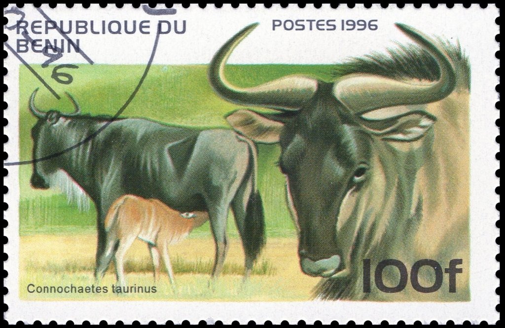 Visibility: public Image owner: none postage 10/15/1996 100f multi issue=Mammals 1996 dt=mammals (1996 Benin) d=Connochaetes taurinus unwmk Crops No visible images cropped from this one. Measurements Resolution is unknown. Source Source name: Colnect File URL: http://i.colnect.net/b/3560/374/Blue-Wildebeest-Connochaetes-taurinus.jpg Uploaded April 5, 2017, 4:40 pm by Stan Shebs |