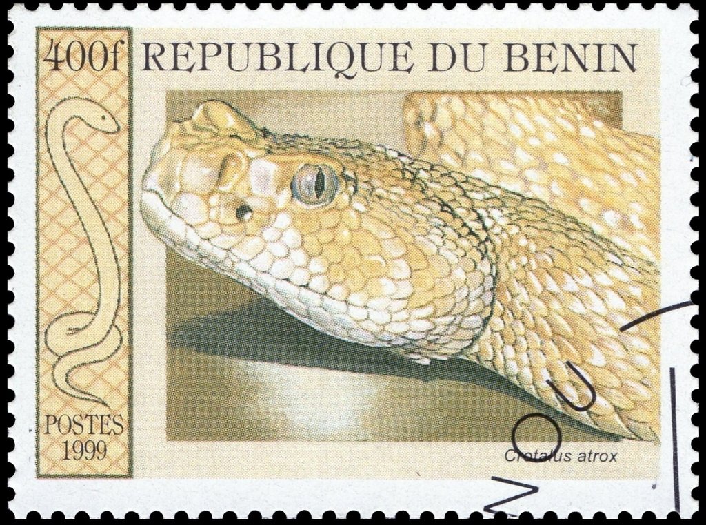 Visibility: public Image owner: none postage 7/18/1999 400f multi issue=Snakes 1999 b d=Crotalus atrox unwmk Crops No visible images cropped from this one. Measurements Resolution is unknown. Source Source name: Colnect File URL: http://i.colnect.net/b/3523/718/Western-Diamondback-Rattlesnake-Crotalus-atrox.jpg Uploaded April 5, 2017, 4:53 pm by Stan Shebs |