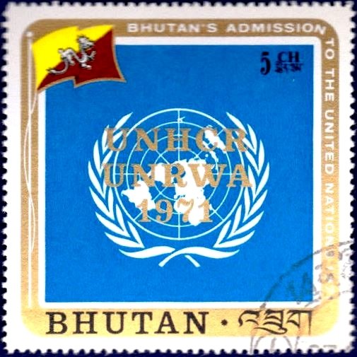 Visibility: public Image owner: none postage 12/23/1971 5ch multi issue=World Refugee Year 1971 d=flag of Bhutan & UN emblem ovpt=UNHCR//UNRWA//1971 oc=blk on=9/21/1971-5ch unwmk Crops No visible images cropped from this one. Measurements Resolution is unknown. Source Source name: Colnect File URL: http://i.colnect.net/b/3373/730/UN-Emblem-and-Bhutan-Flag.jpg Uploaded April 5, 2017, 5:49 pm by Stan Shebs |