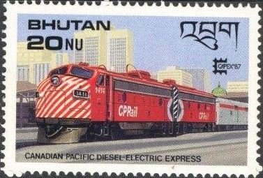 Visibility: public Image owner: none postage 6/15/1987 20nu multi issue=Capex '87 d=Canadian Pacific Diesel-electric Locomotive unwmk Crops No visible images cropped from this one. Measurements Resolution is unknown. Source Source name: Colnect File URL: http://i.colnect.net/b/3363/573/Canadian-Pacific-Diesel-Electric-Express.jpg Uploaded April 5, 2017, 6:09 pm by Stan Shebs |