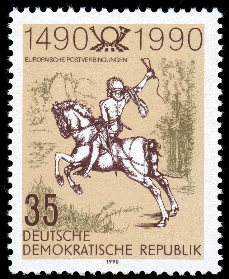 Visibility: public Image owner: none postage 1/12/1990 35pf multi issue=post Europe 500th unwmk Crops No visible images cropped from this one. Measurements Resolution is unknown. Source Source name: Colnect File URL: http://i.colnect.net/b/357/595/-The-Little-Postrider--engraving-by-Albrecht-Dürer.jpg Uploaded August 24, 2014, 10:02 pm by Stan Shebs |