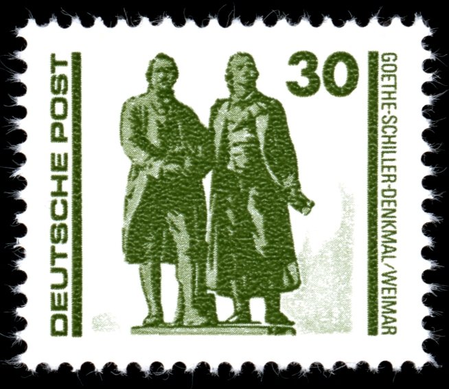 Visibility: public Image owner: none postage 7/2/1990 30pf dkolgrn dt=buildings (1990) d=Goethe-Schiller-Denkmal Weimar unwmk Crops No visible images cropped from this one. Measurements Resolution is unknown. Source Source name: Colnect File URL: http://i.colnect.net/b/357/641/Goethe-Schiller-Monument-Weimar.jpg Uploaded August 24, 2014, 10:04 pm by Stan Shebs |