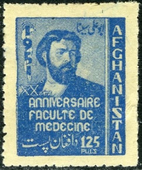 Visibility: public Image owner: none postage 11/4/1951 125p bl issue=20th Anniversary of the Founding of the Medical Faculty of the University of Kabul d=Avicenna unwmk perf=12 Crops No visible images cropped from this one. Measurements Resolution is unknown. Source Source name: Colnect File URL: http://i.colnect.net/b/3928/979/Avicenna-980-1037-Persian-physician-and-polymath.jpg Uploaded April 6, 2017, 4:05 pm by Stan Shebs |