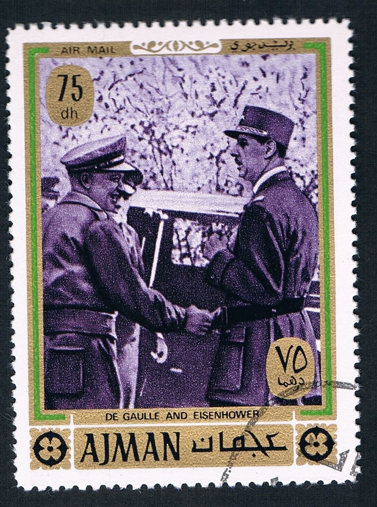 Visibility: public Image owner: none airmail 11/15/1970 75dh multi issue=General Charles de Gaulle d=Generals Charles de Gaulle and Eisenhower unwmk Crops No visible images cropped from this one. Measurements Resolution is unknown. Source Source name: Colnect File URL: http://i.colnect.net/b/3613/065/De-Gaulle--and-Eisenhower.jpg Uploaded April 6, 2017, 6:18 pm by Stan Shebs |