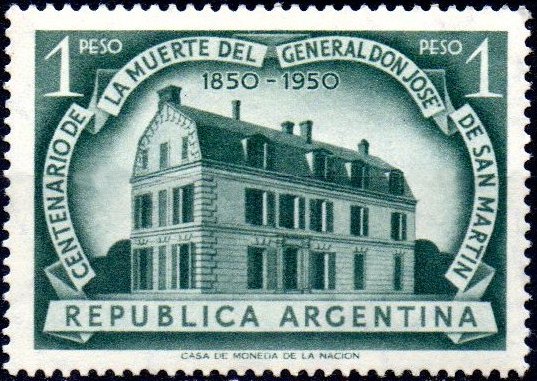 Visibility: public Image owner: none postage 8/17/1950 1p issue=San Martin death 100th unwmk Crops No visible images cropped from this one. Measurements Resolution is unknown. Source Source name: Colnect File URL: http://i.colnect.net/b/3397/841/Jos-eacute--Francisco-de-San-Mart-iacute-n-1778-1850-Death-Centenary.jpg Uploaded April 9, 2017, 10:53 am by Stan Shebs |