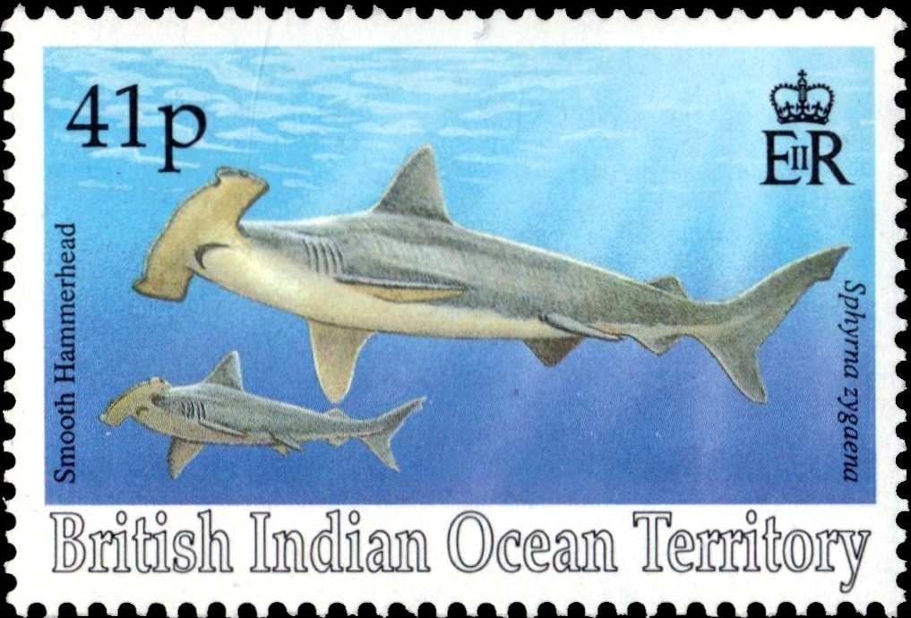 Visibility: public Image owner: none postage 11/1/1994 41p multi dt=sharks (1994 British Indian Ocean Territory) d=smooth hammerhead Sphyrna zygaena wmk=crown & CA spiral Crops No visible images cropped from this one. Measurements Resolution is unknown. Source Source name: Colnect File URL: http://i.colnect.net/b/3975/574/Smooth-Hammerhead.jpg Uploaded April 12, 2017, 4:58 pm by Stan Shebs |