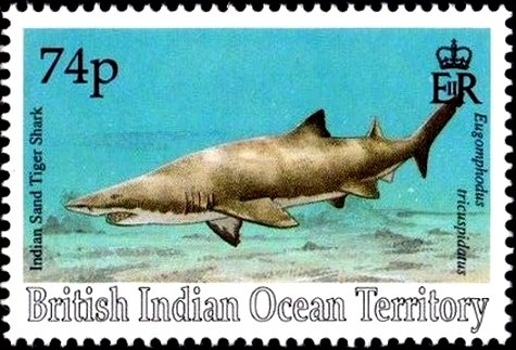 Visibility: public Image owner: none postage 11/1/1994 74p multi dt=sharks (1994 British Indian Ocean Territory) d=Eugomphodus tricuspidatus wmk=crown & CA spiral Crops No visible images cropped from this one. Measurements Resolution is unknown. Source Source name: Colnect File URL: http://i.colnect.net/b/3975/578/Indian-Sand-Tiger.jpg Uploaded April 12, 2017, 4:58 pm by Stan Shebs |