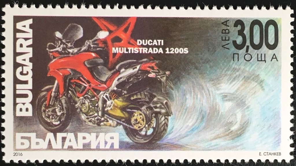 Visibility: public Image owner: none postage 10/22/2016 3.00l multi issue=Adventure Motorcycles d=Ducati Multistrada 1200S unwmk Crops No visible images cropped from this one. Measurements Resolution is unknown. Source Source name: Colnect File URL: http://i.colnect.net/b/3831/006/Ducati-Multistrada-12005.jpg Uploaded April 12, 2017, 7:19 pm by Stan Shebs |
