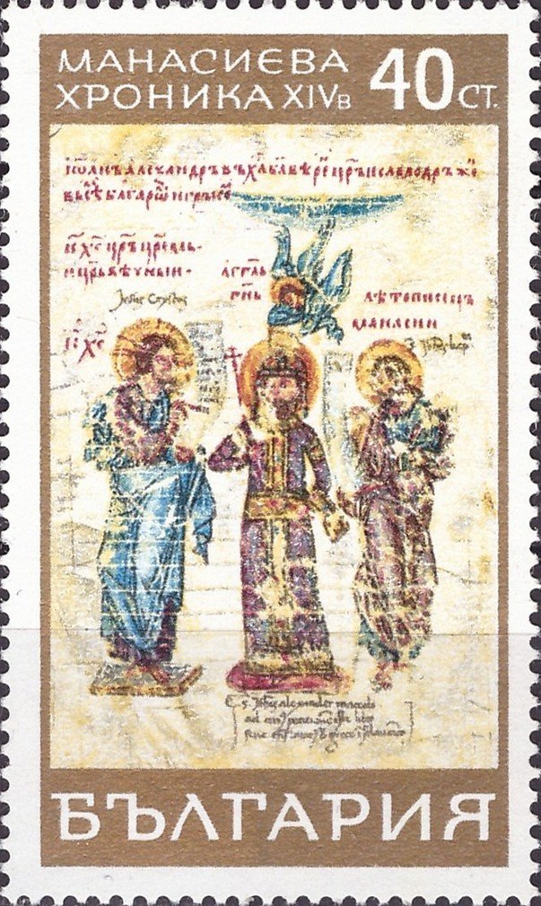 Visibility: public Image owner: none postage 3/20/1969 40s multi issue=Chronicle of Konstantin Manassie d=Tsar Ivan Alexander & Jesus Christ & Constantin Manassès unwmk perf=14 Crops No visible images cropped from this one. Measurements Resolution is unknown. Source Source name: Colnect File URL: http://i.colnect.net/b/3669/106/Tsar-Ivan-Alexander-Jesus-Christ-and-Constantin-Manass-egrave-s.jpg Uploaded April 12, 2017, 9:09 pm by Stan Shebs |
