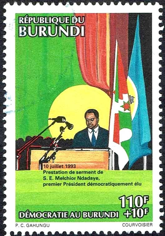 Visibility: public Image owner: none postage 10/20/1994 110+10fr multi issue=1st Anniversary of the First Multi-party Elections in Burundi d=President Ndadaye unwmk Crops No visible images cropped from this one. Measurements Resolution is unknown. Source Source name: Colnect File URL: http://i.colnect.net/b/3348/733/Taking-the-oath.jpg Uploaded April 13, 2017, 2:17 am by Stan Shebs |