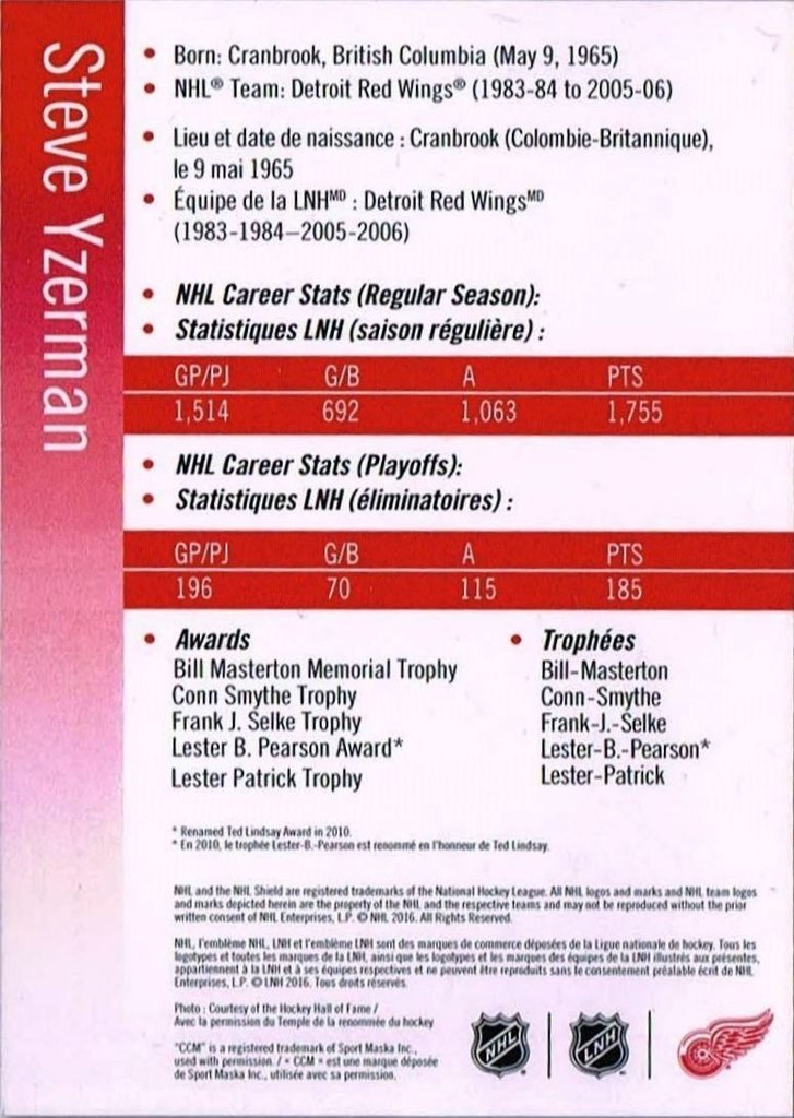 Visibility: public Image owner: none Crops No visible images cropped from this one. Measurements Resolution is unknown. Source Source name: Colnect File URL: http://i.colnect.net/b/3651/212/Steve-Yzerman-back.jpg Uploaded April 13, 2017, 8:36 pm by Stan Shebs |