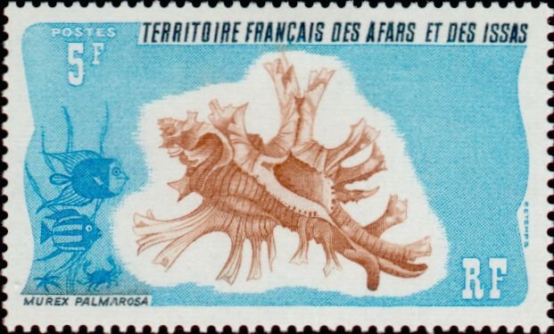 Visibility: public Image owner: none postage 5fr bl&brn issue=Sea Shells (1976) dt=sea shells (1975 Afars) d=Murex palmarosa unwmk perf=13 Crops No visible images cropped from this one. Measurements Resolution is unknown. Source Source name: Colnect File URL: http://i.colnect.net/b/792/974/Rose-branch-Murex-Murex-palmarosa.jpg Uploaded August 25, 2014, 12:48 am by Stan Shebs |