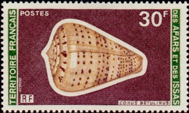 Visibility: public Image owner: none postage 1/27/1977 30fr multi issue=Sea Shells (1977) dt=sea shells (1975 Afars) d=Conus betulinus unwmk perf=13 Crops No visible images cropped from this one. Measurements Resolution is unknown. Source Source name: Colnect File URL: http://i.colnect.net/b/792/976/Betuline-Cone-Conus-betulinus.jpg Uploaded August 25, 2014, 12:48 am by Stan Shebs |