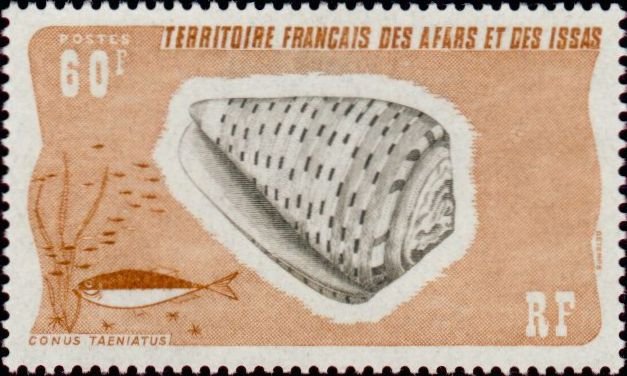 Visibility: public Image owner: none postage 60fr brn&blk issue=Sea Shells (1976) dt=sea shells (1975 Afars) d=Conus taeniatus unwmk perf=13 Crops No visible images cropped from this one. Measurements Resolution is unknown. Source Source name: Colnect File URL: http://i.colnect.net/b/792/978/Ringed-Cone-Conus-taeniatus.jpg Uploaded August 25, 2014, 12:48 am by Stan Shebs |