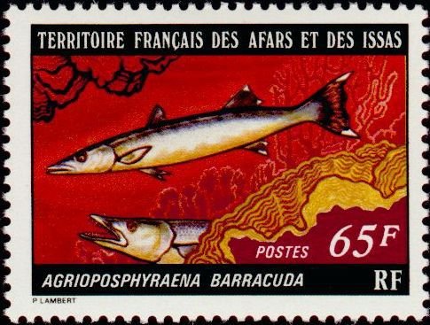 Visibility: public Image owner: none postage 4/15/1977 65fr multi issue=Fish d=Agrioposphyraena barracuda unwmk perf=13x12.5 Crops No visible images cropped from this one. Measurements Resolution is unknown. Source Source name: Colnect File URL: http://i.colnect.net/b/792/994/Great-Barracuda-Sphyraena-barracuda.jpg Uploaded August 25, 2014, 12:48 am by Stan Shebs |