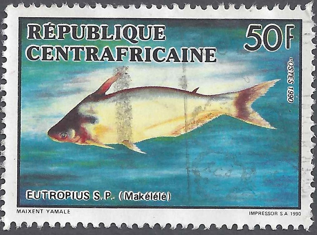 Visibility: public Image owner: none postage 1/26/1991 50fr multi dt=fishes (1991 Central Africa) d=Eutropius sp. unwmk Crops No visible images cropped from this one. Measurements Resolution is unknown. Source Source name: Colnect File URL: http://i.colnect.net/b/3601/799/African-Glass-Catfish-Eutropius-sp.jpg Uploaded April 14, 2017, 1:31 am by Stan Shebs |