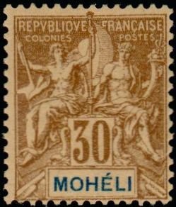 Type: stamp Issuer: Moheli Date: 1906 Denom: ?
