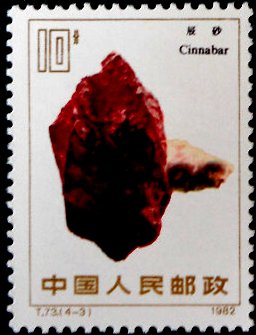 Visibility: public Image owner: none postage 8/25/1982 10f multi issue=Minerals 1982 dt=minerals (1982 China, PRC) d=cinnabar unwmk perf=11.25x11 Crops No visible images cropped from this one. Measurements Resolution is unknown. Source Source name: Colnect File URL: http://i.colnect.net/b/3928/187/Cinnabar.jpg Uploaded April 15, 2017, 4:56 am by Stan Shebs |
