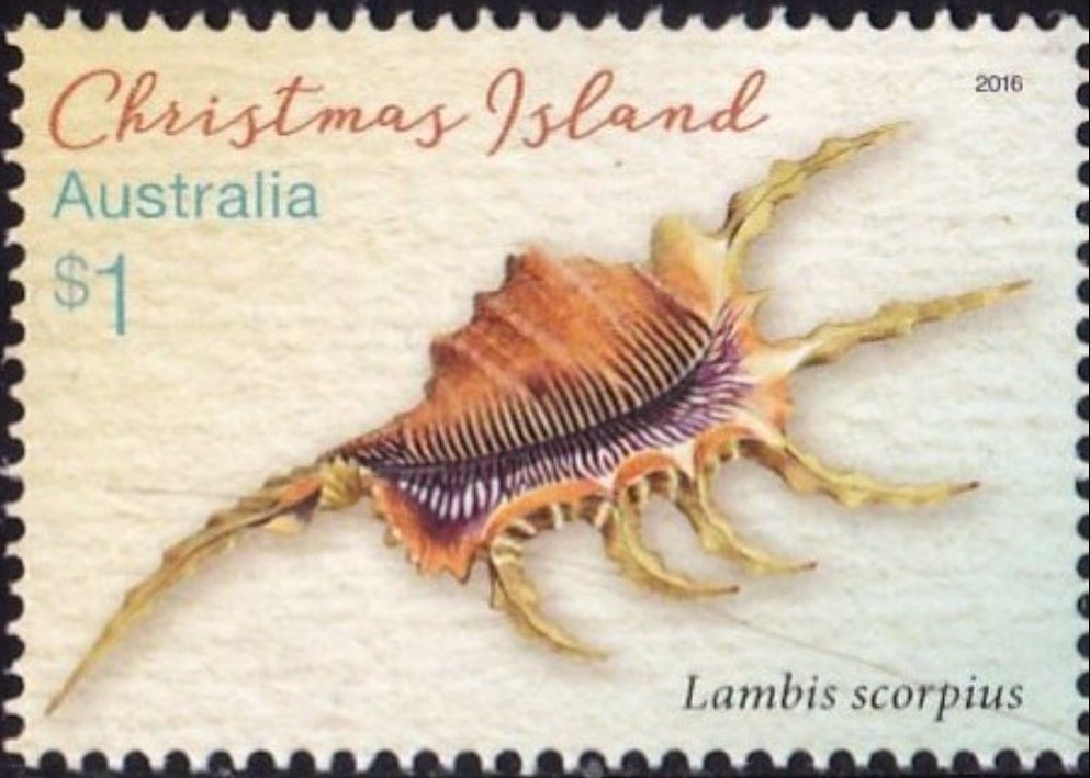 Visibility: public Image owner: none postage 8/23/2016 $1 multi issue=Christmas Island Shells dt=Christmas Island Shells d=Lambis scorpius (2016) unwmk Crops No visible images cropped from this one. Measurements Resolution is unknown. Source Source name: Colnect File URL: http://i.colnect.net/b/3891/628/Scorpion-Spider-Conch-Lambis-scorpius.jpg Uploaded April 16, 2017, 12:19 pm by Stan Shebs |