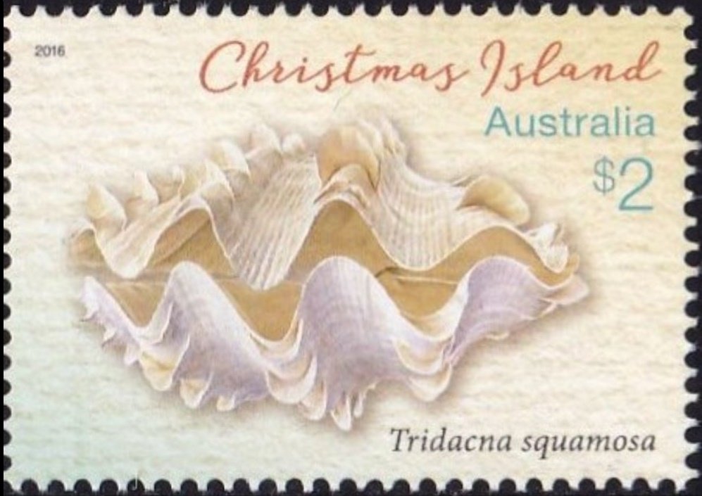 Visibility: public Image owner: none postage 8/23/2016 $2 multi issue=Christmas Island Shells dt=Christmas Island Shells d=Tridacna squamosa (2016) unwmk Crops No visible images cropped from this one. Measurements Resolution is unknown. Source Source name: Colnect File URL: http://i.colnect.net/b/3891/633/Fluted-Giant-Clam-Tridacna-squamosa.jpg Uploaded April 16, 2017, 12:19 pm by Stan Shebs |