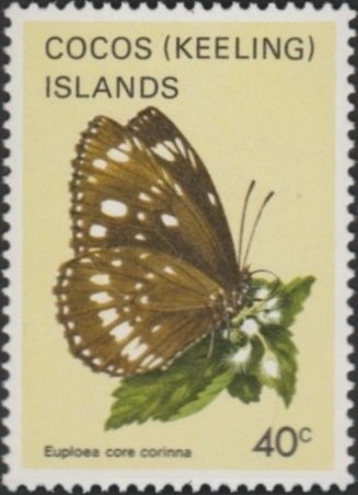 Visibility: public Image owner: none postage 9/6/1982 40c multi issue=1982 dt=butterflies (1982 Cocos (Keeling) Islands) d=Euploea corecorinna unwmk Crops No visible images cropped from this one. Measurements Resolution is unknown. Source Source name: Colnect File URL: http://i.colnect.net/b/3087/455/Oleander-Butterfly-Euploea-corecorinna.jpg Uploaded April 16, 2017, 2:22 pm by Stan Shebs |