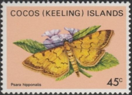 Visibility: public Image owner: none postage 9/6/1982 45c multi issue=1982 dt=butterflies (1982 Cocos (Keeling) Islands) d=Psara hipponalis unwmk Crops No visible images cropped from this one. Measurements Resolution is unknown. Source Source name: Colnect File URL: http://i.colnect.net/b/3087/456/Moth-Psara-hipponalis.jpg Uploaded April 16, 2017, 2:22 pm by Stan Shebs |