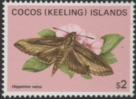 Visibility: public Image owner: none postage 9/6/1982 $2 multi issue=1982 dt=butterflies (1982 Cocos (Keeling) Islands) d=Hippotion velox unwmk Crops No visible images cropped from this one. Measurements Resolution is unknown. Source Source name: Colnect File URL: http://i.colnect.net/b/3087/473/Moth-Hippotion-velox.jpg Uploaded April 16, 2017, 2:22 pm by Stan Shebs |