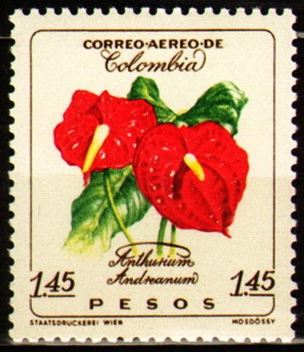 Visibility: public Image owner: none airmail 5/10/1960 1.45p multi dt=flowers (1960 Colombia) d=Anthurium andreanum unwmk perf=12 Crops No visible images cropped from this one. Measurements Resolution is unknown. Source Source name: Colnect File URL: http://i.colnect.net/b/3220/384/Anthurium-Andreanum.jpg Uploaded April 16, 2017, 3:48 pm by Stan Shebs |