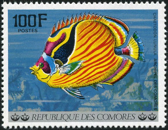 Visibility: public Image owner: none postage 11/21/1977 100fr multi issue=Fish 1977 d=Chaetodon lunula (1977) unwmk perf=13.5 Crops No visible images cropped from this one. Measurements Resolution is unknown. Source Source name: Colnect File URL: http://i.colnect.net/b/3932/357/Raccoon-Butterflyfish-Chaetodon-Lunula.jpg Uploaded April 16, 2017, 4:58 pm by Stan Shebs |